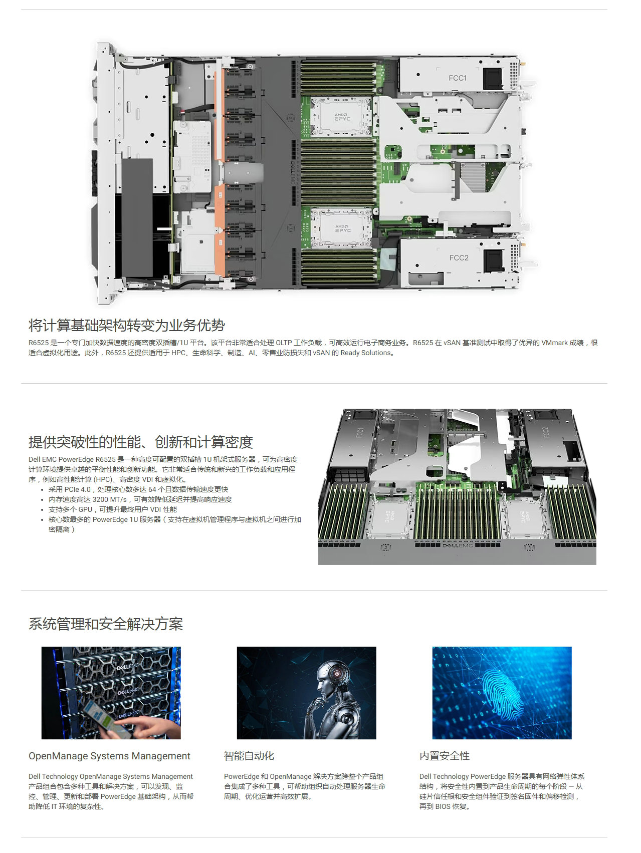 PowerEdge R6525 機(jī)架式服務(wù)器 - 定制服務(wù):一款具備高性能和創(chuàng)新功能的雙插槽 1U 服務(wù)器,可處理 HPC、VDI 和虛擬化等工作負(fù)載,非常適合高密度虛擬化環(huán)境。手機(jī):15666779112(微信交流)